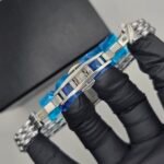 Versace Stainless Steel Men’s Watch – Silver Chain (Black Blue Dial)